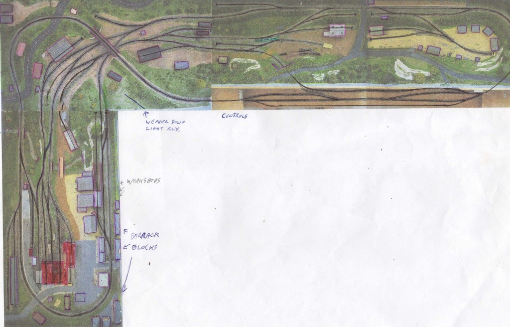 The left hand end of the layout represents Oakhanger, the first station after the interchange at Bordon. The middle part shows some of the siding complexes and the right hand end , the main camp workshops and barracks